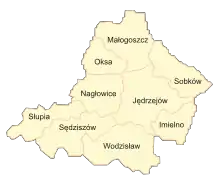 - 6 communes rurales : Imielno, Nagłowice, Oksa, Słupia, Sobków et Wodzisław ;