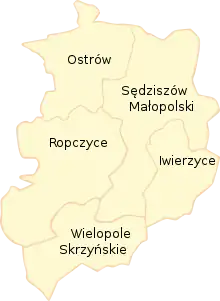 - 3 communes rurales : Iwierzyce, Ostrów et Wielopole Skrzyńskie.