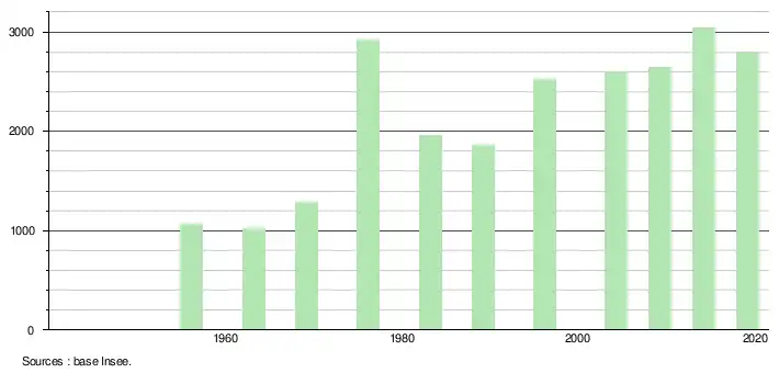En 2019, la commune comptait 2 802 habitants[Note 1], en diminution de 7,71 % par rapport à 2014 (Nouvelle-Calédonie : +0,98 %).
