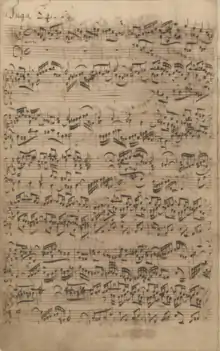 Sur le manuscrit autographe, la première page de la fugue porte un nombre inhabituel de corrections. Ce qui suggère que Bach était encore indécis sur le texte du dernier mouvement de l'œuvre[11].