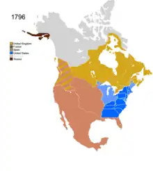 Onze mois après la signature du traité de Jay, les États-Unis et l'Espagne ratifièrent le traité de Madrid, aussi connu sous le nom de « traité de Pinckney ». Signé le 27 octobre 1795, cet accord prévoyait l'établissement de relations pacifiques et amicales entre les deux pays et fixait la frontière sud des États-Unis avec les colonies espagnoles de Floride. De son côté, l'Espagne abandonnait ses revendications sur le territoire de Floride occidentale situé au nord du 31e parallèle. Parmi les clauses du traité figurait aussi la délimitation de la frontière ouest des États-Unis le long du fleuve Mississippi, depuis le nord du pays jusqu'au 31e parallèle[121].