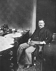 Roosevelt, passionné de vie sauvage et de chasse, fut un ardent défenseur de la nature et il fit de cette question une priorité à l'échelle nationale[51]. Son but était non seulement de protéger les milieux naturels mais aussi de faire en sorte que la société dans son ensemble, et non pas seulement quelques particuliers ou entreprises, puisse tirer profit des ressources naturelles du pays[52]. Son principal conseiller en matière de politique environnementale fut Gifford Pinchot, qui dirigeait le Bureau des forêts. Roosevelt renforça les pouvoirs de Pinchott en déléguant au Bureau des forêts, dépendant du ministère de l'Agriculture, la gestion des forêts nationales, qui relevaient auparavant du ministère de l'Intérieur. L'agence de Pinchott devint le Service des forêts des États-Unis et fut à l'origine de nombreuses mesures de protection des forêts américaines[53].