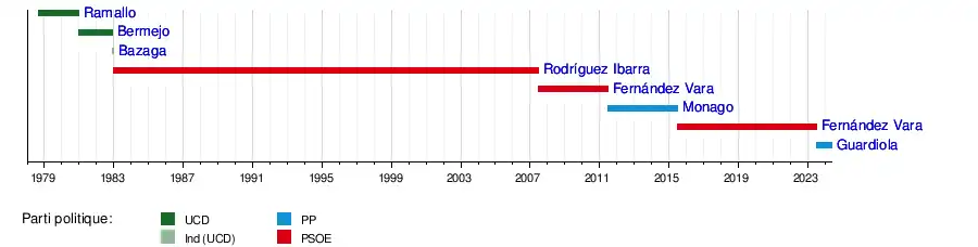 Entre et , le chef de l'exécutif portait le titre de président de la Junte d'Estrémadure (Presidente de la Junta de Extremadura)[18].