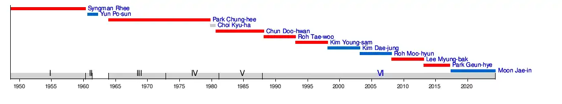 Ce tableau présente la liste des présidents de la république de Corée, depuis la fondation de celle-ci en 1948.