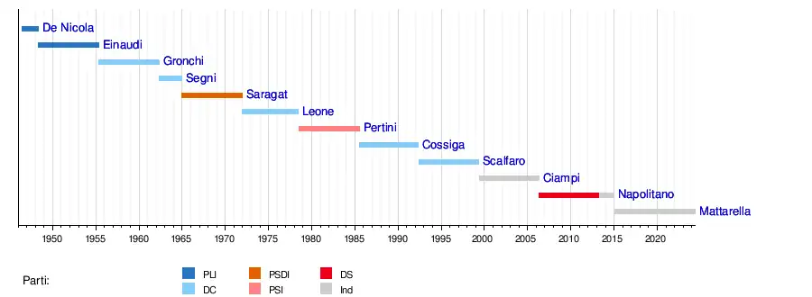 - Présidence la plus longue : Sergio Mattarella (9 ans, 3 mois et 1 jour, en cours)
