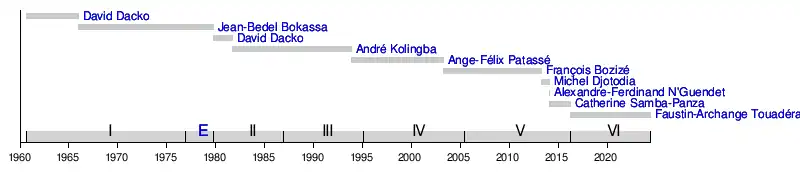 | 3 | David Dacko | Coup d'État (1979) Élection (1981) | ||