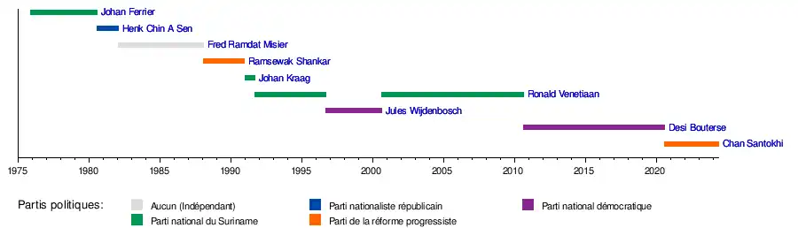 | L'intérim est exercé par Desi Bouterse en tant que président du Conseil national militaire. | ||||||||