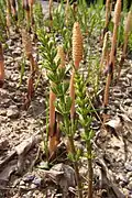 Tiges fertiles de prêles des champs portant les sporanges.