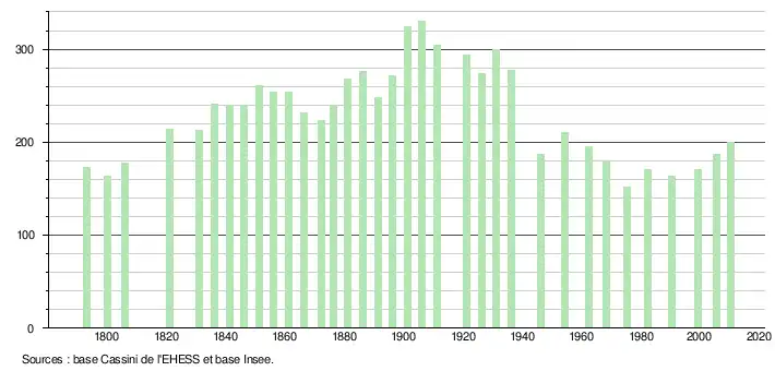 | L'évolution du nombre d'habitants est connue à travers les recensements de la population effectués dans la commune depuis 1793. À partir du , les populations légales des communes sont publiées annuellement dans le cadre d'un recensement qui repose désormais sur une collecte d'information annuelle, concernant successivement tous les territoires communaux au cours d'une période de cinq ans.