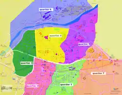 Quartier 2 : c'est dans ce quartier que se trouvait l'ancienne mairie qui a été remplacée par la mairie de quartier. Elle est bordée au nord par l'avenue du Général de Gaulle. Assez atypique, un stade est implanté au milieu du quartier.