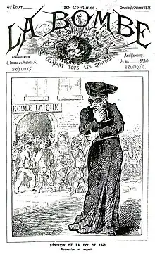 L’épiscopat y voit « un attentat contre la foi et les mœurs »[16]. La presse catholique dénonce cette nouvelle législation comme une « loi de malheur ». C’est le début d’une guerre scolaire qui va durer 5 ans qui porte en elle le « fanatisme des deux partis »[17].