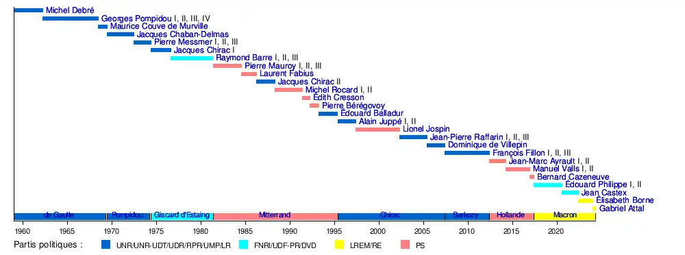 Cinquième Premier ministre à la tête d'un gouvernement minoritaire sous la Ve République. | ||||