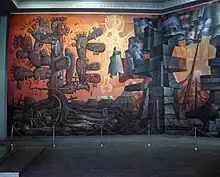 - Citation original en espagnol : « Mural magno en el patio central de la Casa del Arte José Clemente Orozco de la Universidad de Concepción, encomendado al artista mexicano Jorge González Camarena con un equipo de pintores chilenos[3]. »