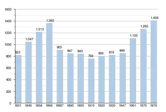 - Sources : INS, Rem. : 1831 jusqu'en 1970 = recensements, 1976 = nombre d'habitants au 31 décembre.