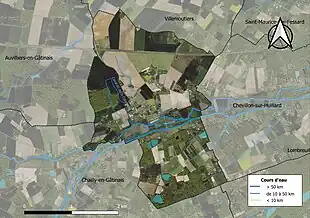 La commune est traversée par le Canal d'Orléans (1,701 km). Le réseau hydrographique communal, d'une longueur totale de 11,4 km, comprend un autre cours d'eau notable, l'Huillard (2,262 km), et divers petits cours d'eau dont la Fosse de Fou (0,219 km), un bras de l'Huillard (1,49 km), le canal 01 de la Cotansière (2,32 km), le cours d'eau 05 de la Brosse (0,4 km), le fossé 01 de Marchais Clair (0,518 km), le fossé 03 de la Forge (1,991 km) et le canal 01 de Chancy (0,5 km)[3].