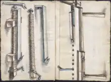 Une presse à double vis permet de serrer en toute sécurité des pièces de grande taille. Cette conception était populaire à la fin du XVIIIe siècle et au début du XIXe siècle, notamment chez les fabricants de chaises. Une évolution moderne relie les vis à l'aide d'une chaîne, ce qui permet de les asservir et de les faire tourner à l'aide de l'une ou l'autre poignée. Elles peuvent également être découplées pour maintenir un travail conique.