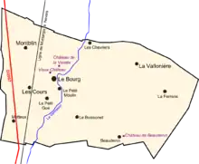 Outre le Bourg, chef-lieu de la commune, les principaux hameaux et lieux-dits sont : les Beaudenin, le Buissonnet, les Chevriers, les Cours, la Ferrerie, le Fourneau, Montblin, les Motteux, le Moulin, le Petit-Gué, la Pouilleterie, le Renard, les Tailles, et la Vallonière. La plupart de ces hameaux sont situés sur la rive gauche du Vernisson. La ligne de chemin de fer sépare et isole nettement les hameaux situés dans la partie occidentale du territoire de la commune des autres hameaux. Le hameau des Cours étant même coupé en deux par la voie ferrée.