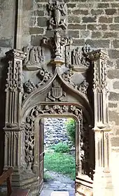 L'accès au cloître, dépourvu de tout programme iconographique, se fait par le passage d'une porte en plein cintre en bel appareil régulier[1].