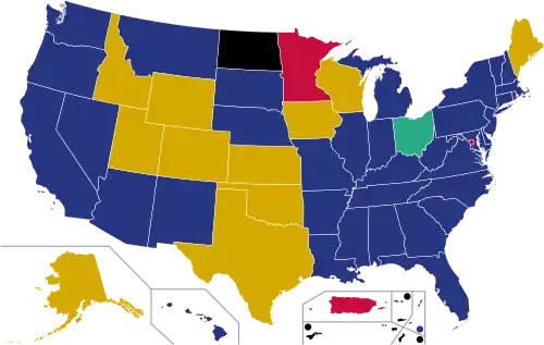 | Ohio | 3 | 63 | 0 | 66 | 0 | Primaires semi-ouvertes | |