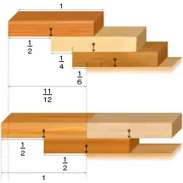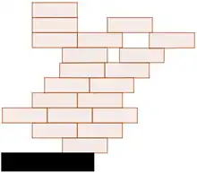 Dans le modèle à empilage simple (single-wide problem), il y a un seul bloc à chaque niveau. Quand les blocs sont tous identiques et rectangulaires, le surplomb maximal pour blocs est[3]