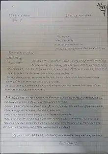 Copie du télex d'Izieu conservé aux Archives nationales américaines, transmis à l'occasion du procès