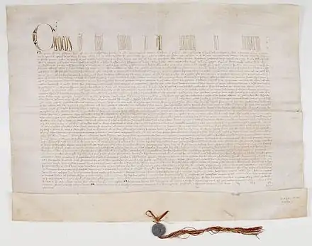 L'ordre du Temple est créé le [9] à l'occasion du concile de Troyes, à partir d'une milice appelée les "Pauvres Chevaliers du Christ et du Temple de Salomon". La bulle pontificale Omne datum optimum est fulminée le par le pape Innocent II[10]. Elle officialise l'ordre du Temple et reconnaît sa règle, accorde à ses membres tout butin conquis sur les Sarrasins en Terre sainte et les place, l'ordre et ses maisons, sous la protection directe du Saint-Siège.