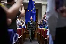 Le , les vingt-sept pays de l'UE accordent à l'unanimité le statut de candidat à l'Ukraine et à la Moldavie par la même occasion[6],[7]. Charles Michel, le président du Conseil européen, évoque un « moment historique » alors que Ursula von der Leyen annonce que « c’est un bon jour pour l’Europe »[8].
