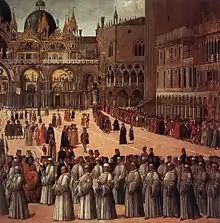 - (en) Cet article est partiellement ou en totalité issu de l’article de Wikipédia en anglais intitulé « Procession in St. Mark's Square » (voir la liste des auteurs).