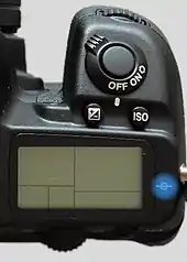 En revanche, dans le cas de la proxiphotographie ou de la macrophotographie, les distances évoquées précédemment ne sont plus négligeables. L'objectif ne peut plus être considéré comme une lentille mince. Il est alors important de bien savoir situer l'origine des distances. Certains appareils intègrent un indicateur permettant de connaître la position du capteur, comme nous pouvons le voir sur la photographie ci-contre surligné en bleu. Il faut bien veiller dans ce cas à utiliser des formules prenant leur origine au plan du capteur et non au plan principal.