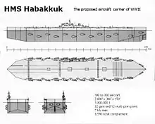 Le Habakkuk fut proposé en décembre 1942 au Premier ministre britannique Winston Churchill par l'amiral Lord Mountbatten, chef du département des Opérations combinées, et l'inventeur Geoffrey Pyke qui y travaillait[1]. Ce navire devait mesurer 610 m de long, 100 m de large, avec des flancs de 12 m d'épaisseur, et un creux de 61 m entre le pont et la quille[2]. Son tirant d'eau aurait été de 46 m, et son déplacement de 1 814 300 tonnes. Il aurait été construit au Canada à partir de 280 000 blocs de glace[3]. À titre de comparaison les plus gros porte-avions de l'époque, les porte-avions américains de la classe Essex déplaçaient 31 750 tonnes.