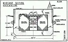 On envisagea alors de prendre comme matériau de construction un mélange de glace et de pâte de bois appelée pykrete, contraction de Pyke (Georges Pyke est celui qui avait proposé l'idée du projet Habakkuk même si le matériau fut inventé par d'autres) et de concrete (béton en anglais). Le tirant d'eau profond du navire lui interdirait d'entrer dans la plupart des ports. Le navire serait doté d'un système de réfrigération pour l'empêcher de fondre. Il aurait une mobilité très restreinte et sa vitesse maximale était estimée à 10 nœuds (environ 18 km/h), avec 26 moteurs électriques placés dans des nacelles extérieures individuelles ; les mettre à l'intérieur aurait généré trop de chaleur pour un navire en glace. Son armement aurait inclus 40 tourelles de 2 canons de 4,5 pouces DP[5] (défense antiaérienne et anti-navire) et plusieurs canons antiaériens. Il aurait eu une piste d'atterrissage/décollage et une capacité de 150 bombardiers et chasseurs bimoteurs.