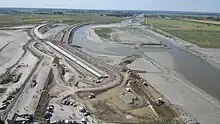 De juin 2006 à juin 2009 est construit un nouveau barrage (piles, radier, équipement des huit vannes[11] et de l'écluse à deux passes à poissons, pont-promenade avec « balcon maritime »[12], l'ancien barrage (à 20 mètres en aval de l'actuel) étant détruit en novembre 2008) sur le Couesnon. Conçu par l'architecte Luc Weizmann, il est mis en service en septembre 2009 et permet un effet chasse[13] à la marée descendante avec un débit maximum de 100 m3/s, soit dix fois le débit naturel moyen du Couesnon[14]. Des travaux hydrauliques sont réalisés en aval de 2012 à 2015 pour permettre la divagation érosive du Couesnon : création de deux chenaux séparés par un seuil de partage en enrochements, munis d'épis[15], démantèlement des cordons d’enrochements historiques[16]. Les travaux hydrauliques amont consistent, après le nettoyage[17] et l’élagage préalables des berges, à draguer le Couesnon[18] et creuser l’anse de Moidrey de neuf kilomètres de canaux[19].