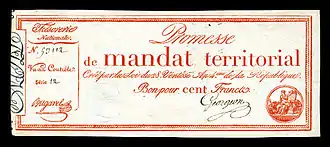Le 28 ventôse an IV (), l'assignat est définitivement remplacé par un nouveau système, la « promesse de mandat territorial » (pour les grosses valeurs) ou « mandat territorial » (pour les petits montants), inspiré par les rescriptions de l'emprunt forcé émises depuis et dont l’État se servait pour régler ses opérations courantes.