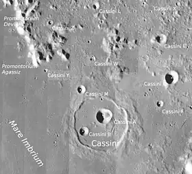 Le Promontorium Deville au nord du cratère Cassini et à l'est de la Mare Imbrium.