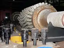 - La turbine à vapeur est une machine rotative qui permit une utilisation plus souple et efficace de la vapeur, le mouvement circulaire supprimant beaucoup de pertes par frottement mécanique et permettant d'atteindre plus facilement des vitesses de rotation supérieures. À l'aube du XXe siècle, les premiers travaux furent réalisés par le Britannique Charles Algernon Parsons et déboucha sur le navire expérimental Turbinia, qui atteignit 34 nœuds en 1897. Comme la machine à vapeur, on perfectionna de façon très poussée l'utilisation maximale de la vapeur par l'utilisation de groupe de turbines, travaillant dans des gammes de pressions décroissantes et entraînant le même arbre. L'usage des turbines finit par remplacer totalement les machines à vapeur à piston, entre les deux guerres mondiales.