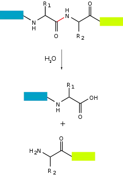 Les peptidases (ou protéases ou enzymes protéolytiques) sont des enzymes qui brisent les liaisons peptidiques des protéines. On parle alors de coupure protéolytique ou de protéolyse. Ce processus implique l'utilisation d'une molécule d'eau ce qui les classe parmi les hydrolases.