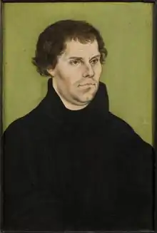 L'année 1521 est également considérée comme déterminante : en janvier, Martin Luther, devant la Diète de Worms, refuse de se rétracter, s’estimant soumis à l’autorité de la Bible et de sa conscience plutôt qu’à celle de la hiérarchie ecclésiastique[22] et est excommunié. Invoqués ici pour la première fois, l'appel direct à Dieu et à la conscience individuelle sont les marqueurs du protestantisme. Parmi les idées de Luther, l'accès de tous à la Bible sans discrimination sociale et l'égalité entre les hommes ont un fort écho dans la population majoritairement paysanne, à tel point qu'elles provoquent, au printemps 1525, le Bauernkrieg (guerre des paysans) dans le Saint-Empire romain germanique.