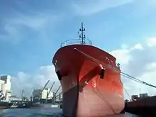 Étrave d'un cargo vue de profil.