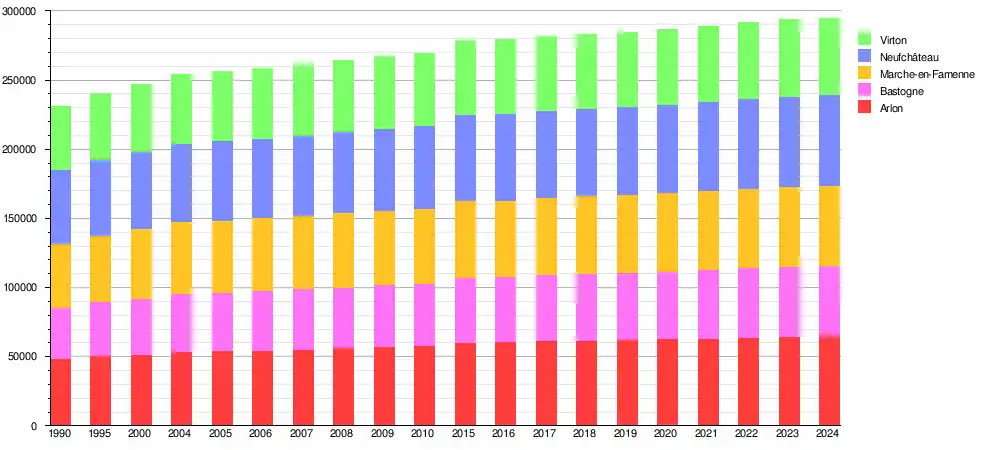 | Arrondissements | Arlon Bastogne Marche-en-Famenne Neufchâteau Virton |