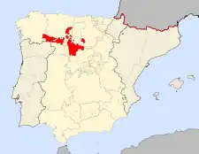 - Tierra de Campos (il existe aussi une comarque naturelle de Tierra de Campos qui s'étend sur les provinces de Zamora, Valladolid, Palencia et León.) (« Terre des champs »)