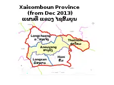 Depuis la guerre, un conflit est en cours entre le gouvernement communiste du Laos et des membres de l'ethnie Hmong, notamment dans la province de Xaisomboun[1]. La zone spéciale de Xaysomboun placée sous administration militaire est créée en 1994 pour mieux contrôler et isoler les résistants hmong. La zone est dissoute en 2006 et les territoires sont réattribués aux provinces de Vientiane et Xieng Khouang[4]. La province actuelle est créée le à partir des districts de Hom et de Longsane de la province de Vientiane et du district de Thathom de la province de Xieng Khouang.