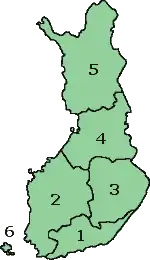 La Finlande a été historiquement subdivisée en plusieurs provinces (läänit en finnois, län en suédois). Cette division a été formalisée en 1634, à l'époque où la Finlande faisait partie du royaume de Suède[1]. Ces provinces historiques ont ensuite subi plusieurs redécoupages. La dernière réorganisation a eu lieu en 1997 et a ramené leur nombre à six (douze auparavant), elles-mêmes divisées en vingt régions.