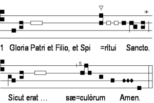 Les psalmodies de l'office sont très nombreuses: Il y a huit types d'intonation et de formule médiane, qui ne dépendent que du ton, mais les terminaisons sont très variées, aboutissant à une cinquantaine de formules. Ces formules sont différenciées par la note finale : dans l'exemple ci-dessus, la formule "1G" signifie qu'il s'agit d'une formule adaptée pour le premier mode, et se terminant sur un Sol (=G, en notation traditionnelle).