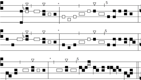 La teneur est ici notée par un grand rectangle blanc: c'est une note unique sur laquelle le corps du verset sera chanté.