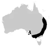 Cette espèce est endémique d'Australie. Bien que sa population ait fortement diminué, elle reste encore largement répandue entre 20 et 1 000 m d'altitude sur presque toute la Nouvelle-Galles du Sud, le Victoria, le Sud-Est du Queensland et l'Est de l'Australie-Méridionale y compris Kangaroo Island[1],[2].
