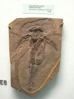 Pterichthyodes est un genre éteint de poissons antiarches[1] datant du Dévonien. Ses fossiles ont été découverts en Écosse[1].