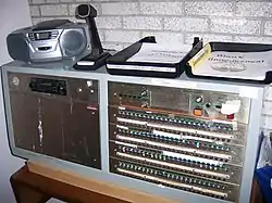Les ingénieurs ont inventé les premiers amplificateurs et systèmes de haut-parleurs puissants pour les systèmes de sonorisation et les cinémas. Ces grands systèmes de sonorisation et de cinéma étaient très grands et très chers, et ne pouvaient donc pas être utilisés par la plupart des musiciens en tournée. Après 1927, des systèmes de sonorisation plus petits, portables et alimentés par le secteur, qui pouvaient être branchés sur une prise murale ordinaire, « sont rapidement devenus populaires auprès des musiciens » ; en effet, « [...] Leon McAuliffe (avec Bob Wills) utilisait encore un micro à charbon et une sono portable en 1935 ». De la fin des années 1920 au milieu des années 1930, les petits systèmes de sonorisation portables et les amplificateurs combinés pour guitare étaient assez similaires. Ces premiers amplis avaient « un seul contrôle de volume et une ou deux prises d'entrée, des haut-parleurs à bobine de champ » et de minces cabinets en bois ; remarquablement, ces premiers amplis n'avaient pas de contrôle de tonalité ou même un interrupteur marche-arrêt[12]. Des systèmes de sonorisation portables que l'on pouvait brancher dans des prises murales sont apparus au début des années 1930, lorsque l'introduction de condensateurs électrolytiques et de tubes redresseurs a permis d'obtenir des alimentations intégrées économiques qui pouvaient être branchées dans des prises murales. Auparavant, les amplificateurs nécessitaient de lourds blocs de batteries multiples.
