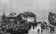 Dans le bâtiment de la brasserie locale en 1940, les Allemands créèrent un camp de transit, dans lequel la sélection raciale des habitants polonais expulsés de la région fut effectuée (voir: Politique raciale de l'Allemagne nazie )[10]. Ceux considérés comme ayant une « valeur raciale » furent déportés vers les camps de germanisation et les camps de travail en Allemagne, et les autres furent expulsés vers le gouvernement général[11]. Les Polonais expulsés de Gmina Dziemiany furent utilisés aux travaux forcés dans l'usine locale[12].