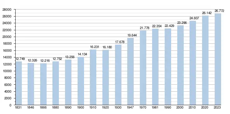 - Source : DGS - Remarque: 1831 jusqu'à 1981=recensement; depuis 1990=nombre d'habitants chaque 1er janvier[18]