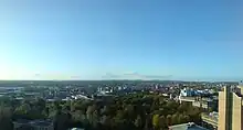 L'arbre urbain et la forêt urbaine jouent un rôle très mineur par rapport aux émissions urbaines, mais leur capacité de stockage semble avoir été sous-estimée ; Une étude faite à Leicester[18] de ses puits de carbone (publiée en 2011) a montré que la flore urbaine y stockait en tout 231 521 tonnes de carbone, soit 3,16 kg m−2 en moyenne. Les jardins privés en stockent plus que le milieu rural agricole (environ 0,76 kg, soit un peu plus qu’une prairie anglaise (0,14 kg m−2).
